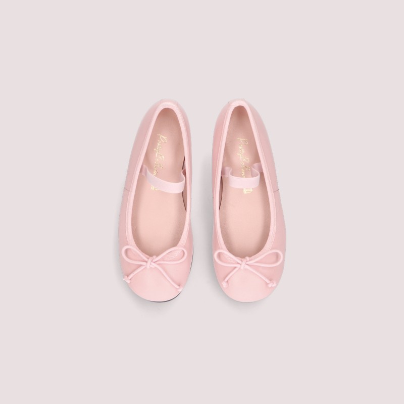 Little princess Hannah flat with elastic strap for extra hold. Pink soft leather.