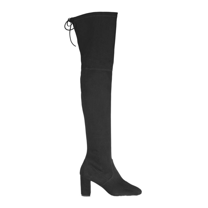The Mascaro over the knee boot has turned in to a classic. You asked and we listened, adding that popular boot in to our flat collection. Super comfy 3 inches heel in Black elastic suede