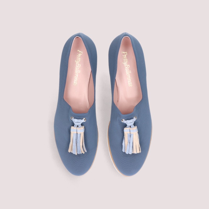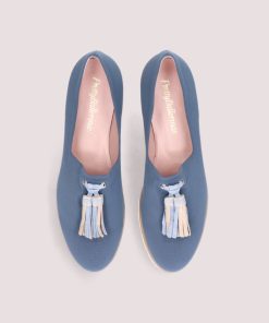 For the Charlize lovers, this only gets better! Your favorite light weight travel-loafer in blue sea with blue and taupe suede tassels