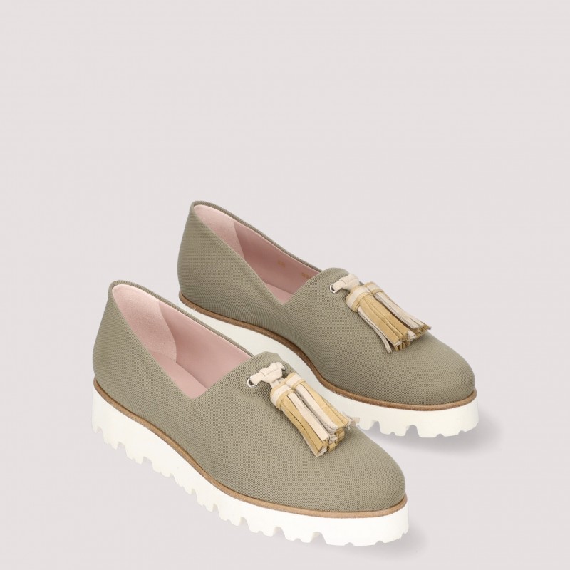 For the Charlize lovers, this only gets better! Your favorite light weight travel-loafer in taupe with camel and beige suede tassels