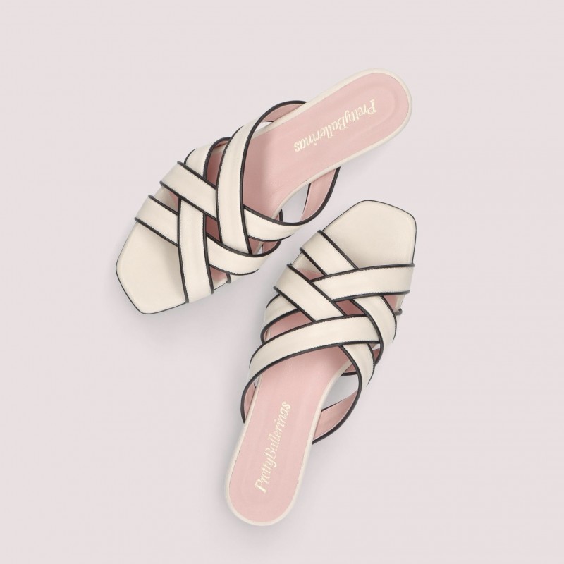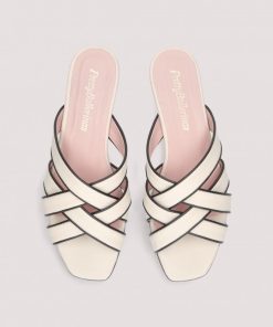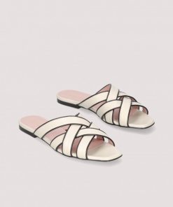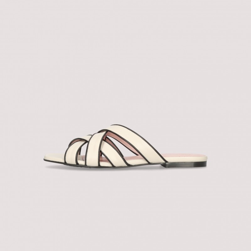 Sandal Isla with criss-cross straps in super soft beige/nude leader with black details