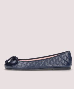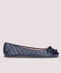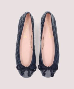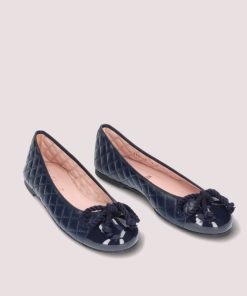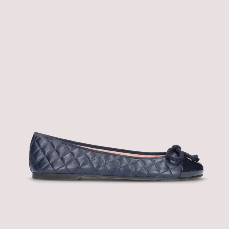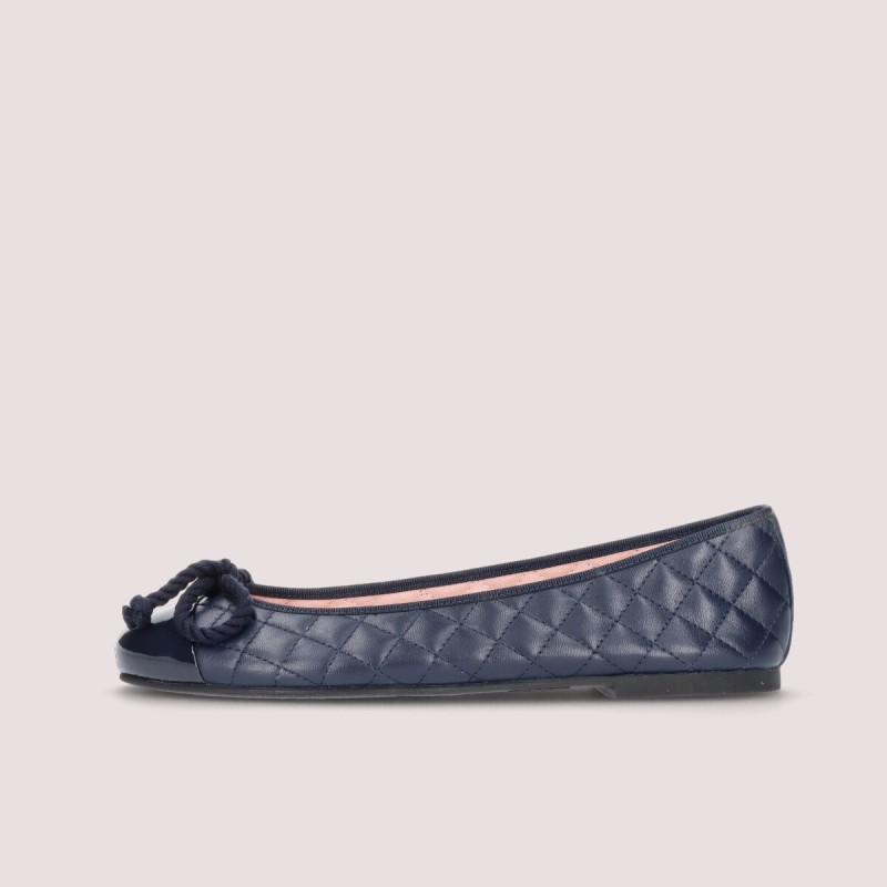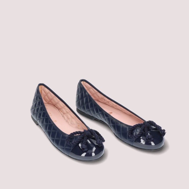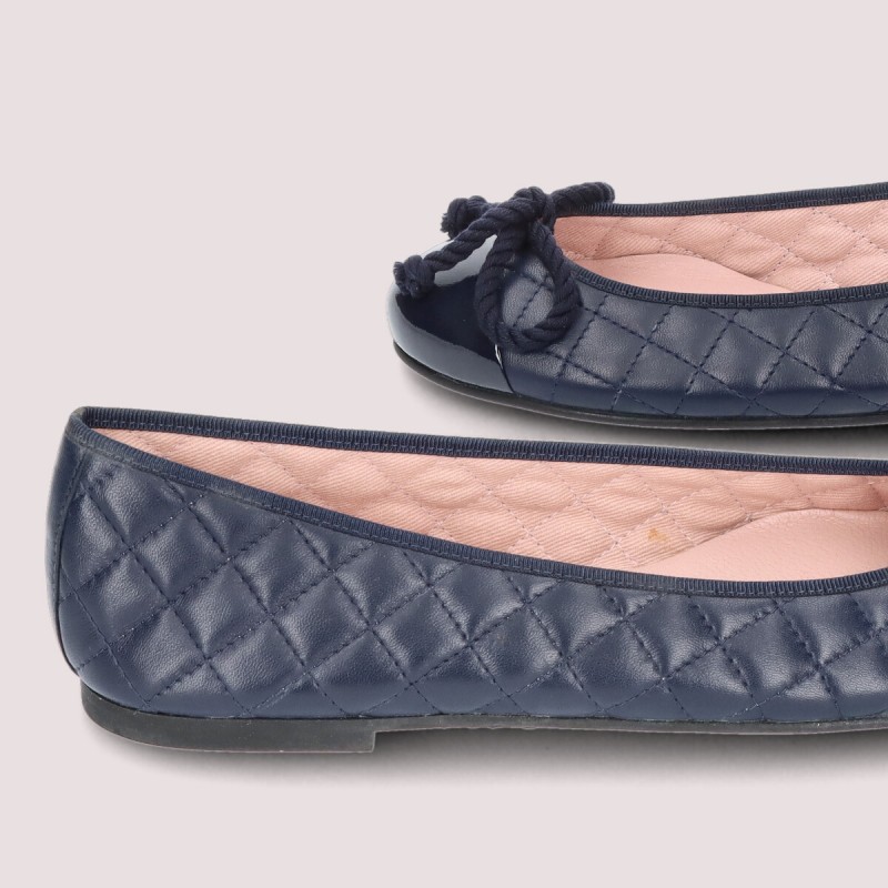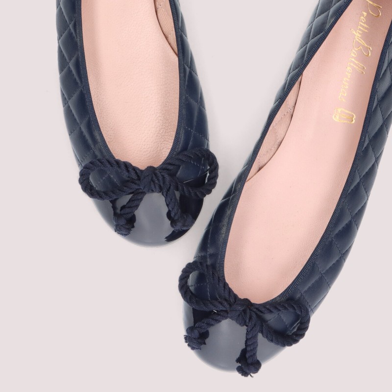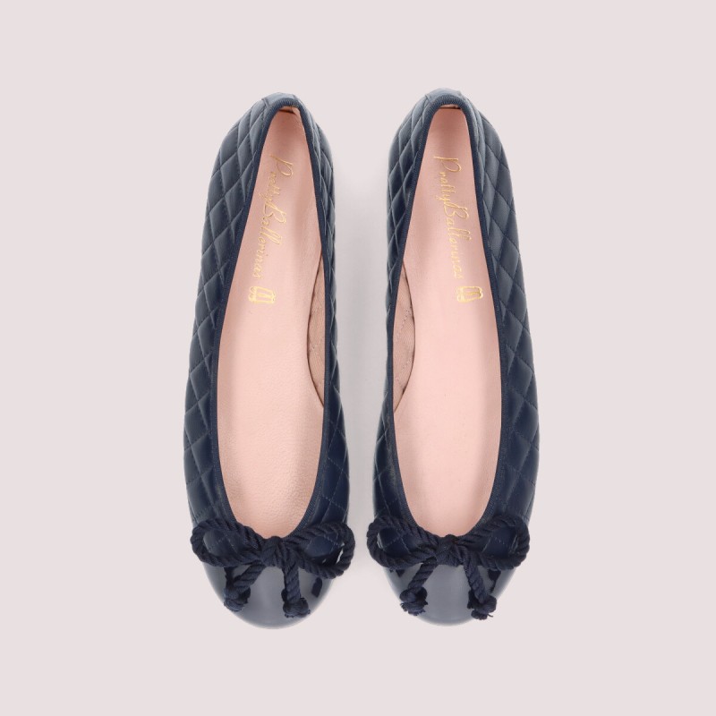 Our Rosario flat in navy quilted soft leather and navy patent toe, for any season