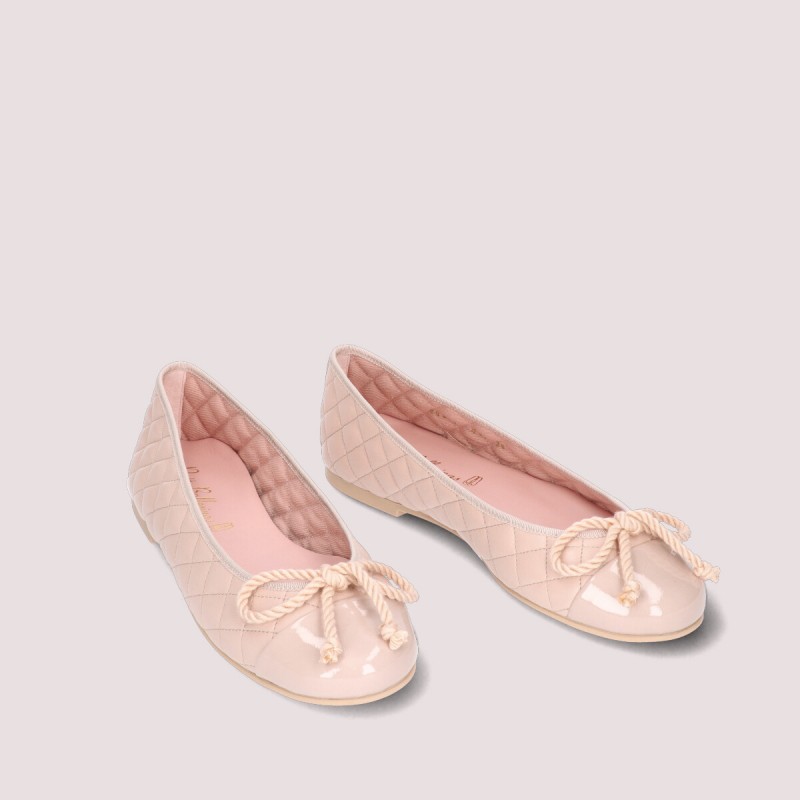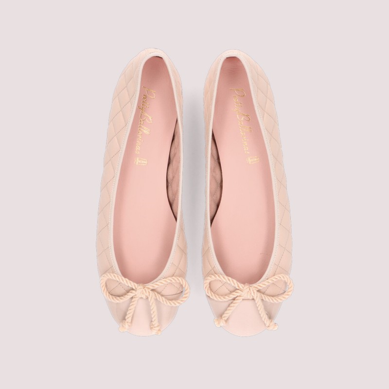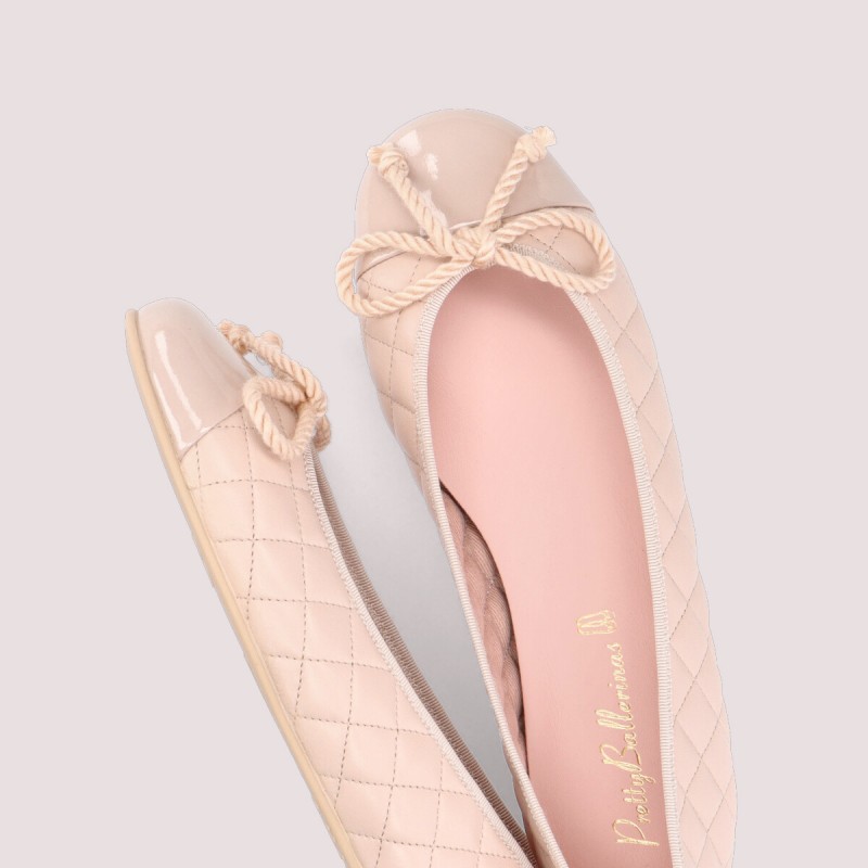 Our Rosario flat in nude quilted soft leather and nude patent toe, for any season