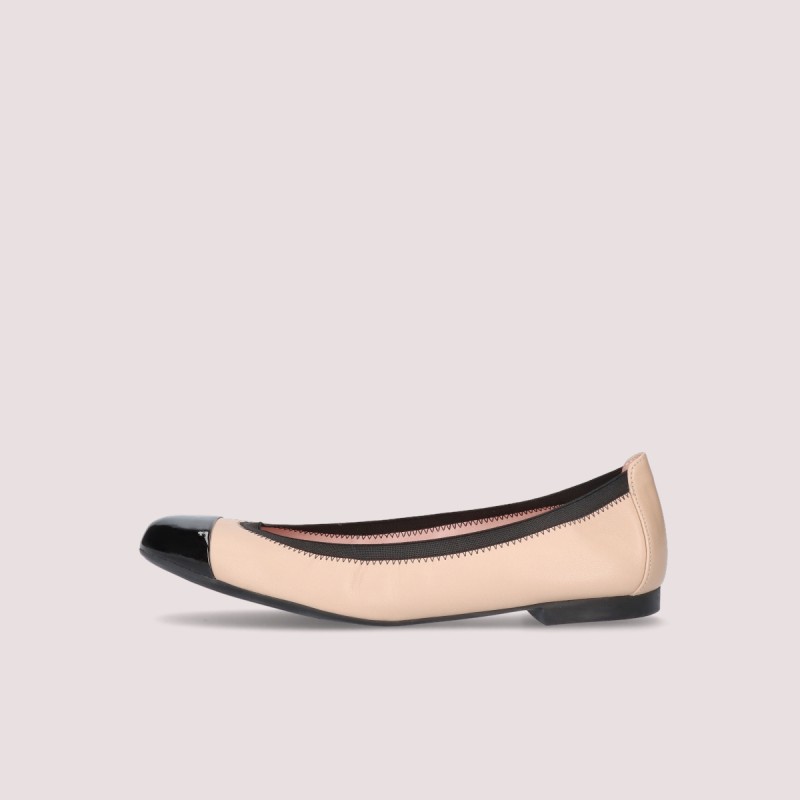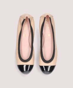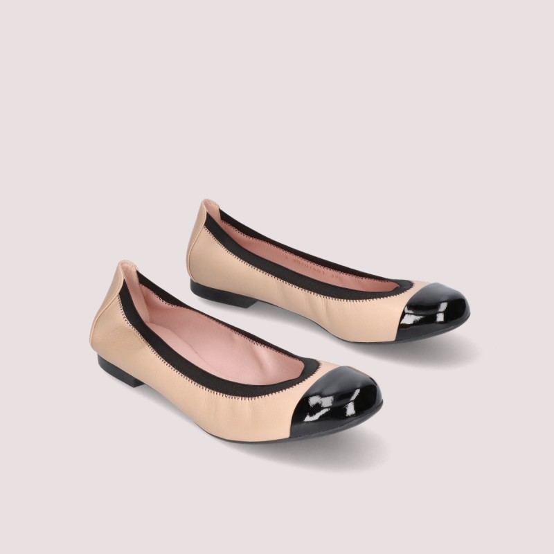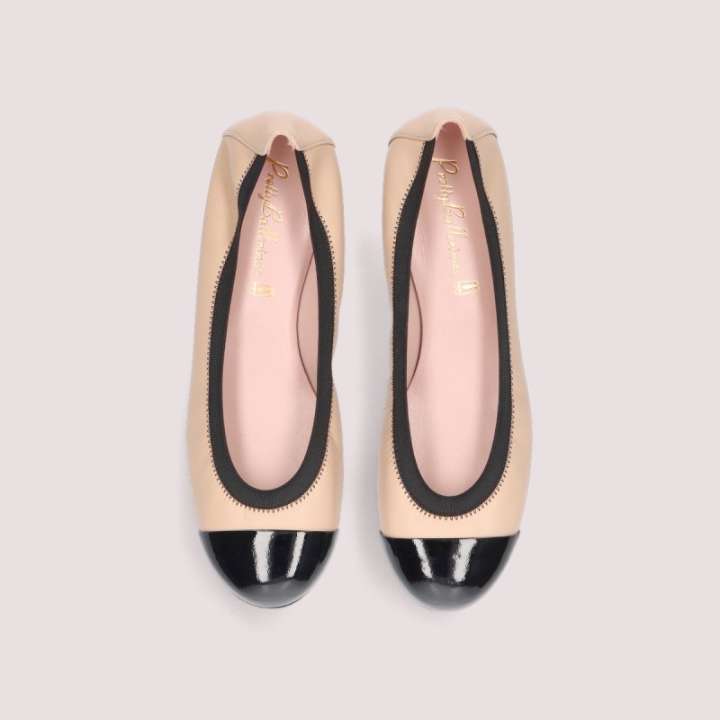Our classic Shiley in soft tan leather with black patent btoe. . Runs small, we suggest you to buy 1/2 size up